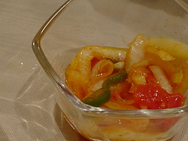 - キムチみたいなパッと見ですが、まったく辛くなく、しんなりしたタマネギが美味しかった。(bouz)