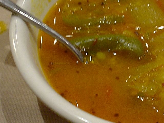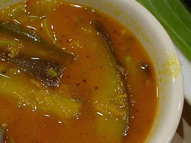 インド料理はそれ程好きというわけじゃないのですが、それはなぜかというと、東南アジアの醤油文化圏料理が好みというのもあるけど、多くの店で「単調」ということを感じるんですが(つまりどれを食べても似てて料理名が覚えられない。記憶力がわるいだけって?(^^;)、ここは確かに南インド料理好きが勧めるだけあって旨いです。南インド料理はあまり食べないので詳しくないんで適切な表現を思いつかないけど、スパイスの使い方がメリハリがあって旨いと思います。(JK)