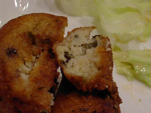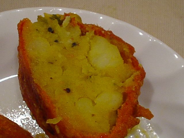 - 手づかみでトライしましたが、熱かったのでこの時点で素手で食べるのは諦めました。お味は、ちょっと淡白で、炭水化物摂取用メニューの感じ。(bouz)