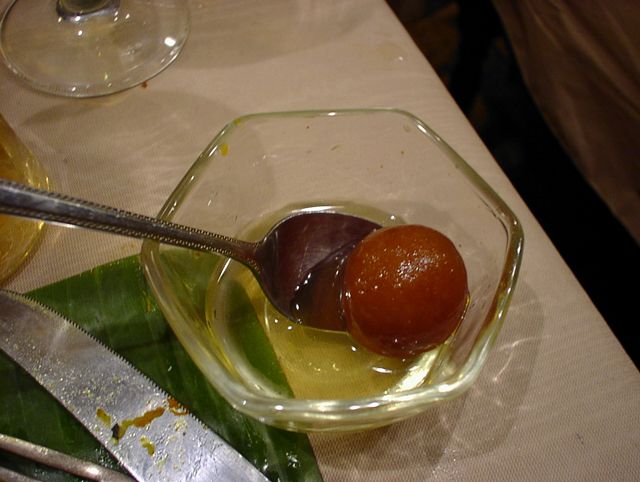 - 辛い料理の後に、この甘いのが出ると丁度スッキリする計算なのでしょうが、今回のお料理は、あまり辛くなかったです。その点ややインパクト不足。(bouz)
