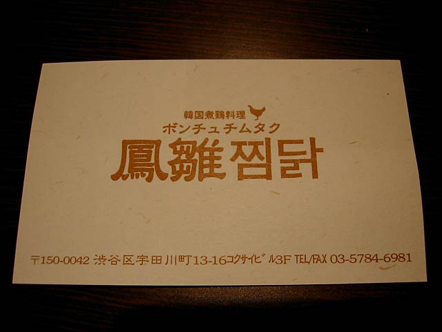 2003/09/13(#0726):渋谷の韓国煮鶏料理、ボンチュチムタク