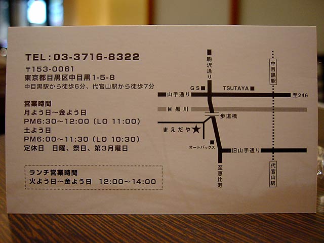 当初の予定の 中目黒のジンギスカン食堂、まえだや は予約でいっぱいでした。他にいくつか中目黒でお店を探しましたが、行きたいお店は待ってる人が行列になっていて、渋谷に変更しました。中目黒って最近の人気スポット?(JK)