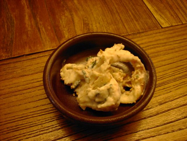 - 不思議な食感のパサパサしたものを豆腐あえにしたような?(JK)