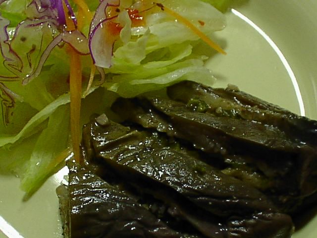 - ナスの前菜です。にんにく風味の煮びたしといった感じで面白いです。(め)