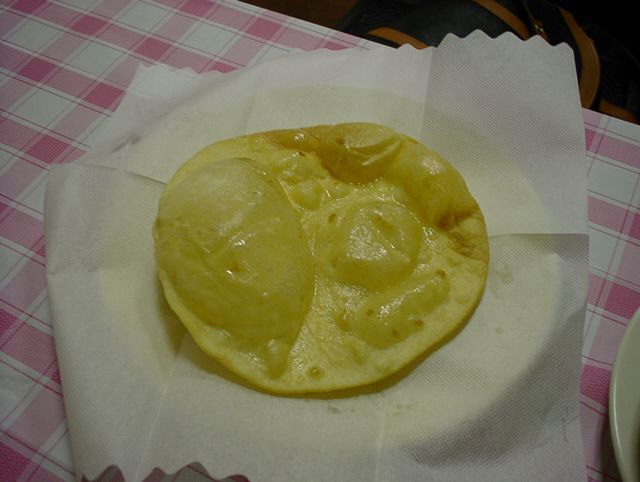 - 揚げパンの一種ですね。よくあるプーリとは食感が違って、中の生地がもっちりした感じがとてもよいです。(め)