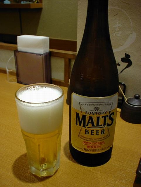 - おつまみに鴨南蛮も頼んだので、ついでにビールも注文。ビールはすぐ出てくるので鴨南蛮が出てくる頃合を見て注文したつもりだったけどまだちょっと早すぎた。(め)