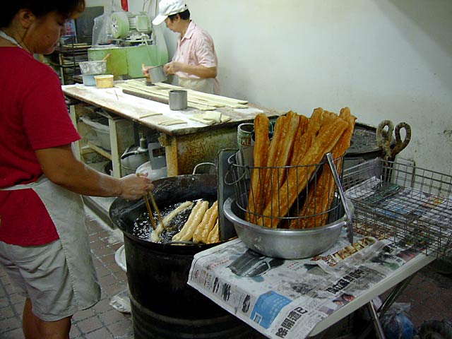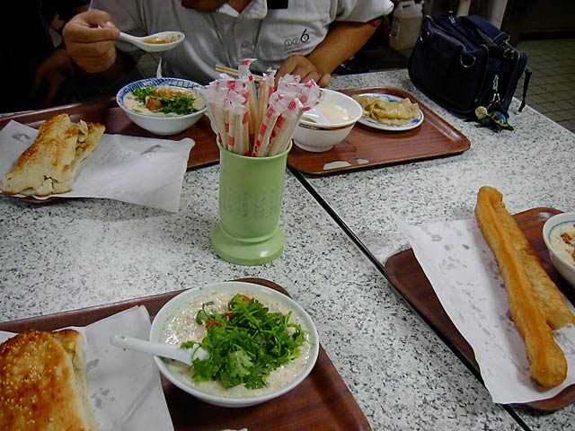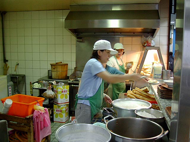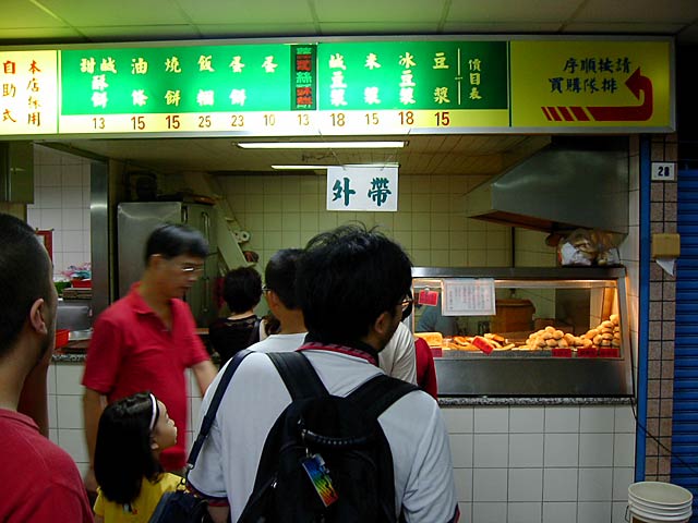 その華山市場の2階にある「阜杭豆漿」。朝5:30〜10:30まで営業の朝食店ですね。このカウンターで注文します。ここで食べても良いし持ち帰りも出来ます。(JK)
