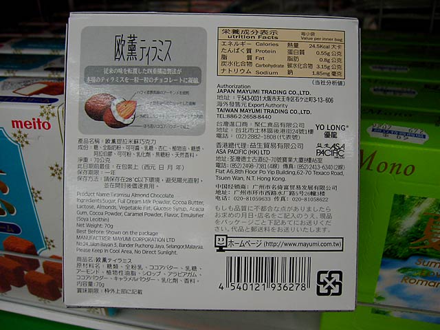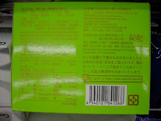 台湾では、特に食品には日本語が良く書いてあるようなんですが、この商品の日本語はなかなかです。日本人でも悩んじゃう(^^;