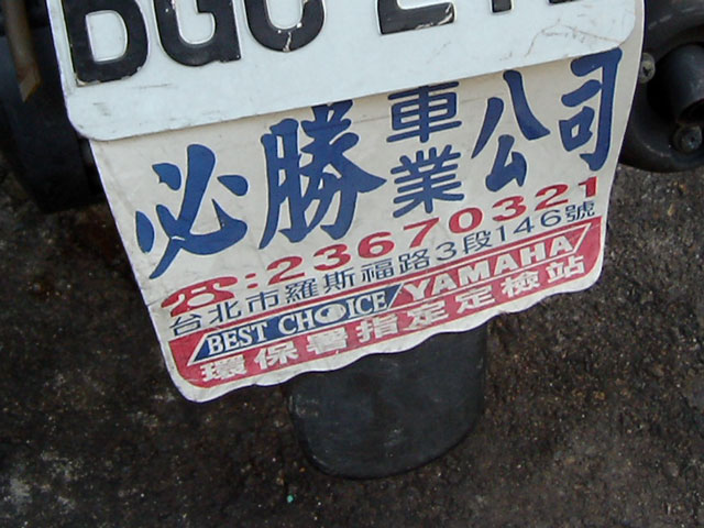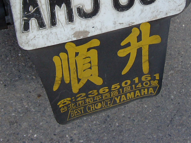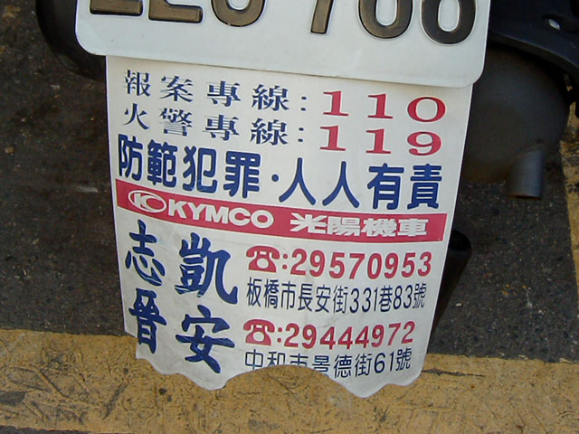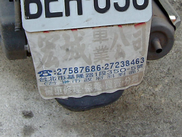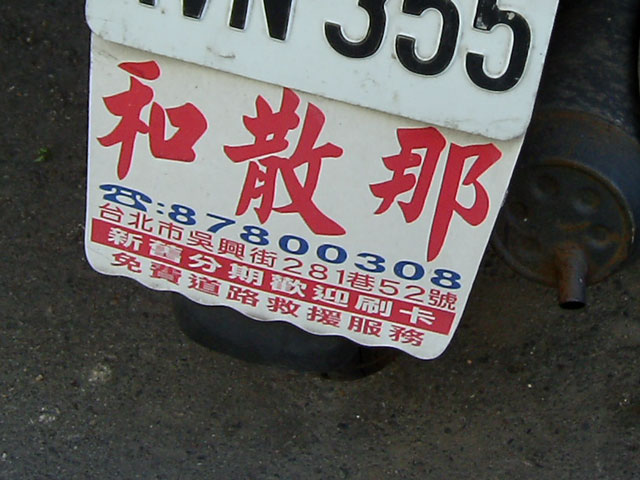ところで。バイクのナンバーの下にこんなもんがついてるんですが、これって広告?