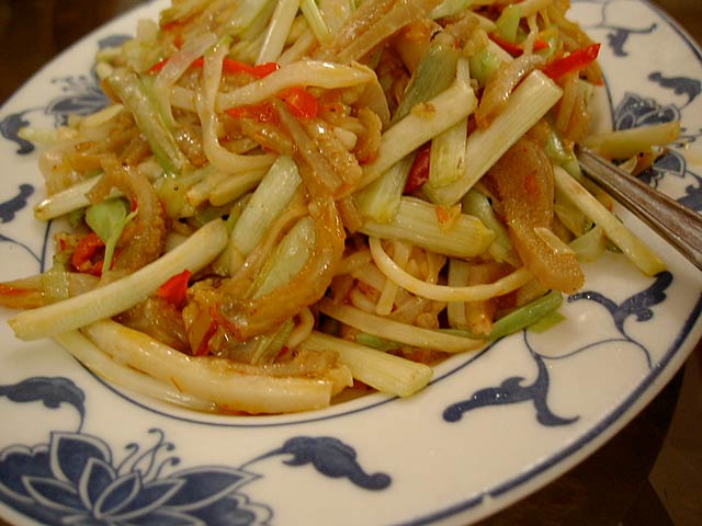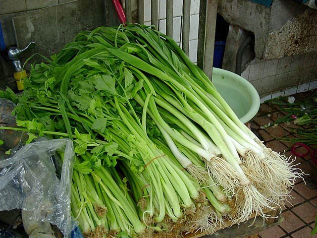 ちょっと調べてみると、中国野菜としては実はとてもポピュラーで、Googleすると本場中国の「陳麻婆豆腐」には必須、つまり日常的な野菜なんですよー。うーん、知らなかった。日本ではほとんど手に入らないので、葱だけで代用してしまってるんでしょうね。沖縄では栽培されてるそうですが。(JK)