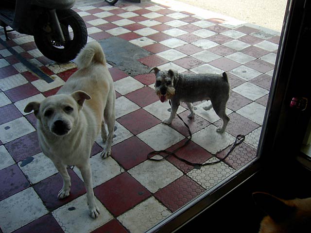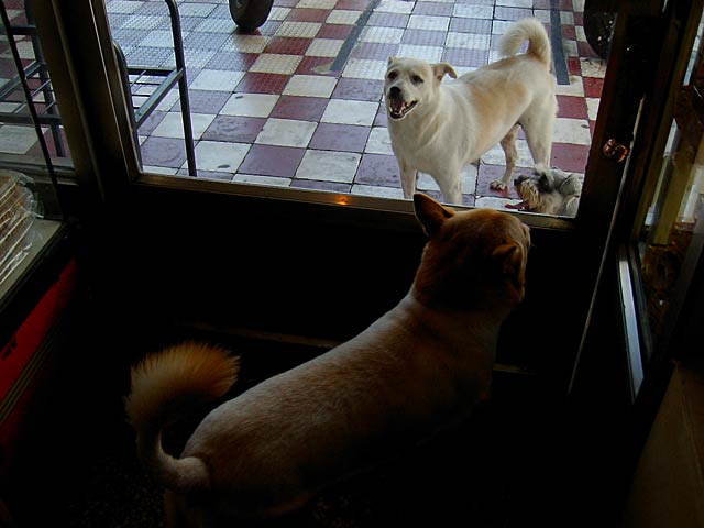 どうもこの3匹ともこのお店の飼い犬みたい?