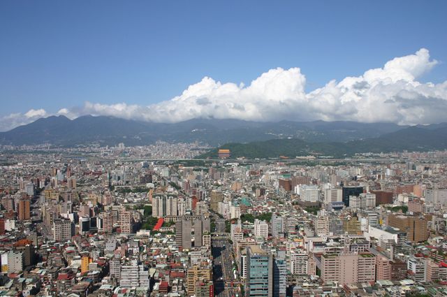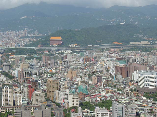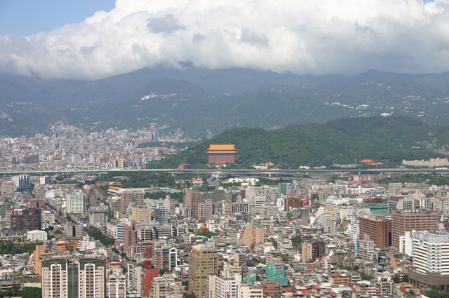 更に北方向の眺め。遠方手前の山裾に見えるのが「圓山大飯店」です。
