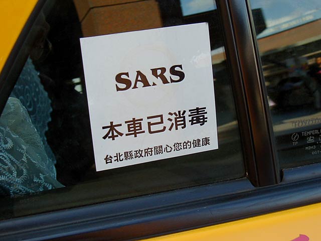「SARS」には赤い進入禁止マークが重なってるんですが赤インキは日焼けして消えてます。