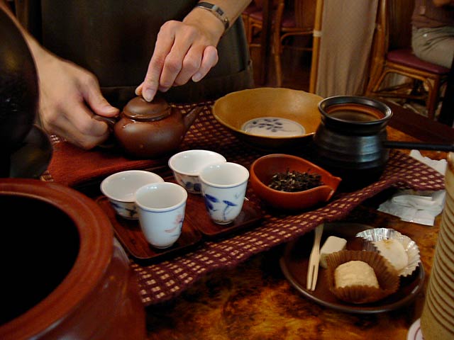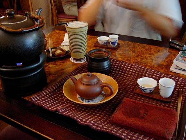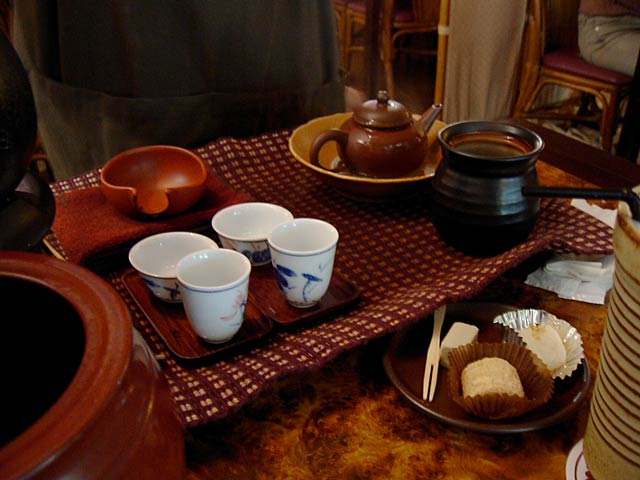 茶盤の代わりが写真一枚目の陶器の壺みたいなの+茶壺下に置いてるお皿、ですね。(JK)