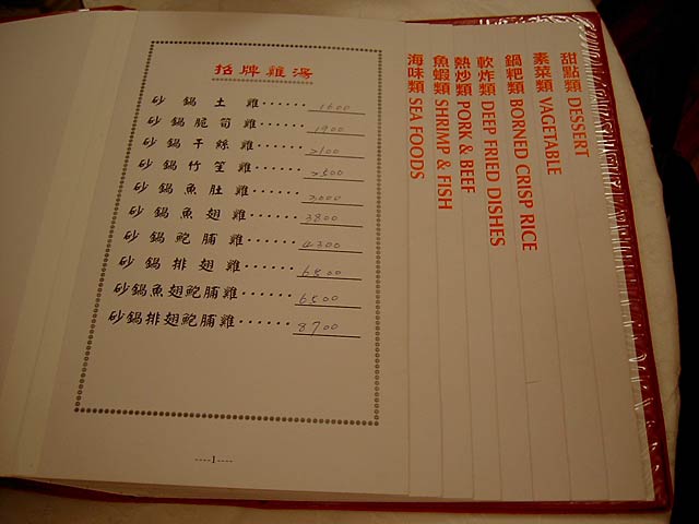 1600元から8700元まであって、スープに入れる具によって値段が異なります