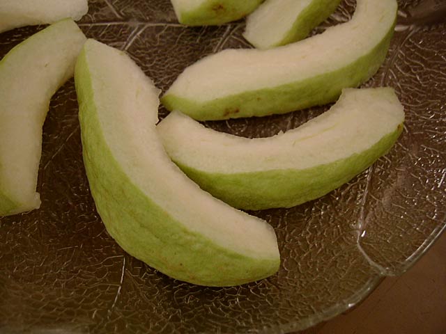 グアバは熟している部分とそうでない部分で、味わいに大きな違いがあります。熟しているところは食べる価値ありです。が、大半は熟してなくておいしくないことが多いのです。(ska)