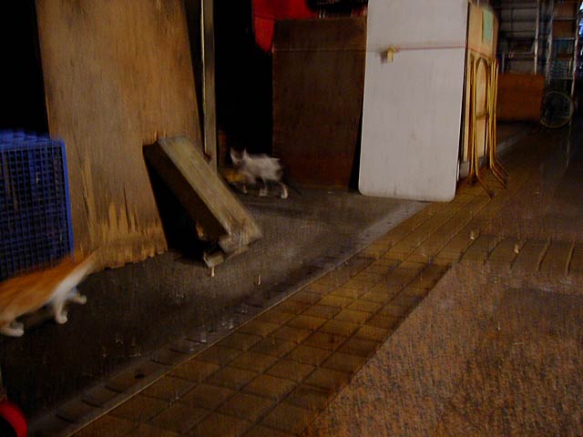 これは夜市で。ここでも猫じゃらしを取り出してみましたが、子猫なのに反応しません。(10/11夜)