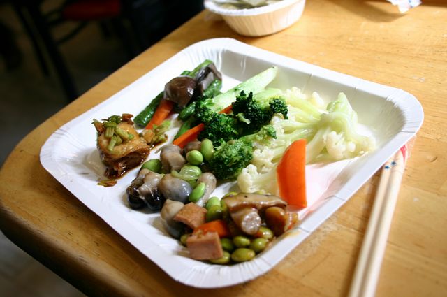 素食は初めてなので楽しい。味は特筆すべきものがなかったけれど、肉もどき類はとてもよくできているものもあって面白いです。今度はおいしい素食の店を探してみたいなあ。(ska)