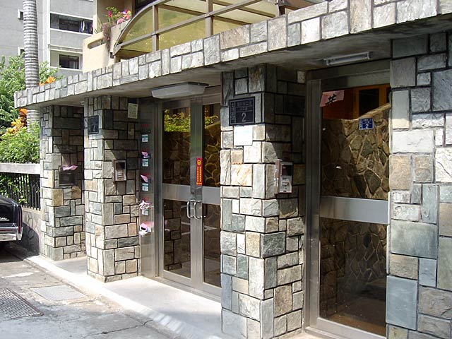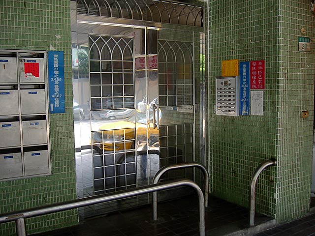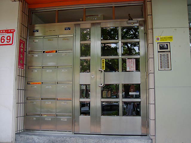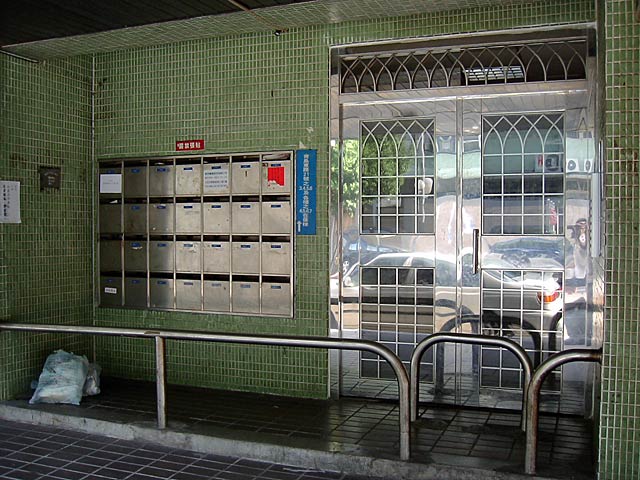 住宅は「公寓(kong yu)」という分譲が多いそうです(これがそうかどうかはわかりませんが)。で、どこも玄関には住所とポストがあるだけで日本の表札のようなものはありません。どうも中国大陸の家々でも表札という習慣はないらしい?
