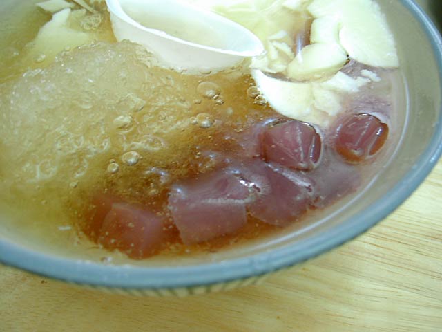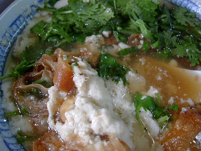東京に帰ってから、桜エビとか入れて真似して作ってみたんですが、うーーん、基本から違う感じ。たぶん同じ「醤油」という名前でも味が相当違ってたので台湾の醤油を手に入れないと。あと、凝固に使った酢の味の違いも関係するんでしょうね。