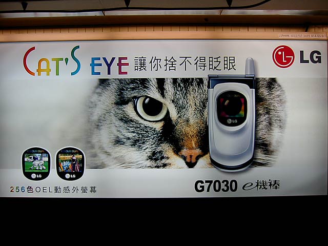 ここでも猫が広告に使われています。これ、犬だと鋭さがでないよね。(^^;