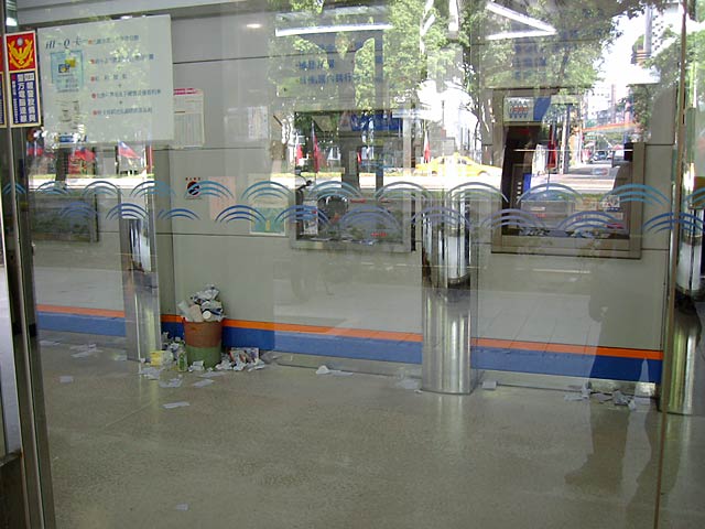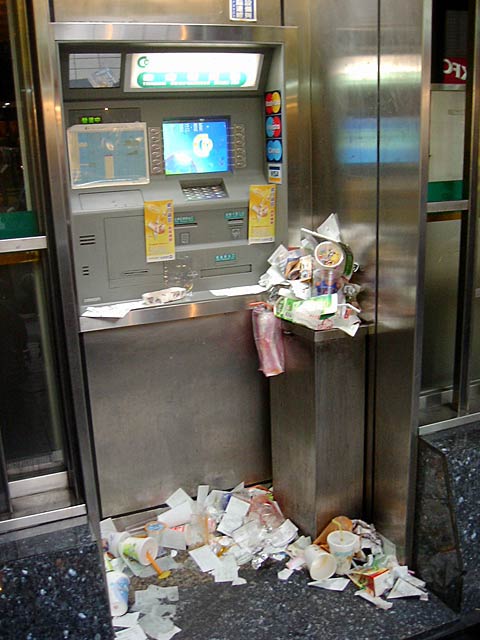 24時間営業のキャッシュディスペンサーがゴミだらけになるのは日本と同じですね。