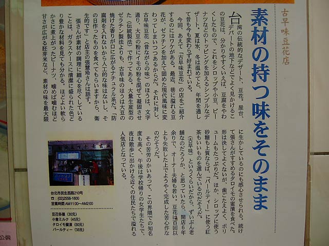 このお店「古早味豆花」について詳しく書いてある雑誌記事が貼ってありました。