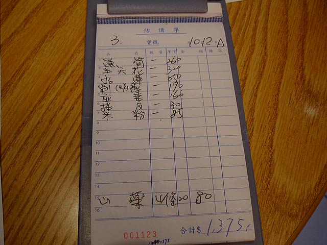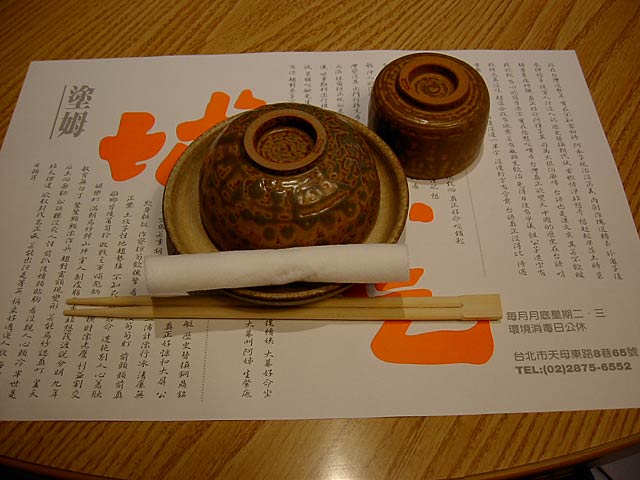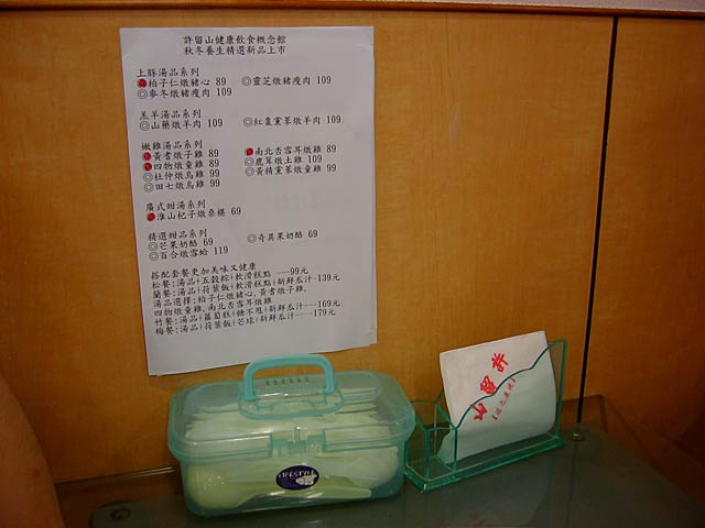 ランチョン・シートの右下に「毎月月底星期二・三」とあるは、たぶん定休日が「毎月の第四週火・水曜日」と日本語であるのでそのことかな? 毎月の最後の週の二日目三日目が休みということでしょう。