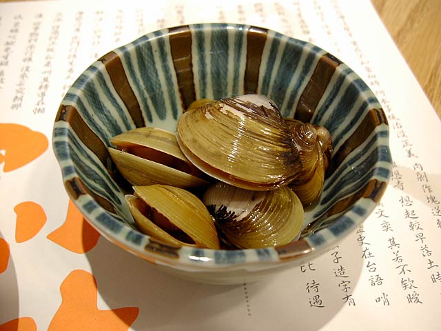 シジミの醤油漬け(XO[西奄]蜆仔)。これはお通し的なものみたい。