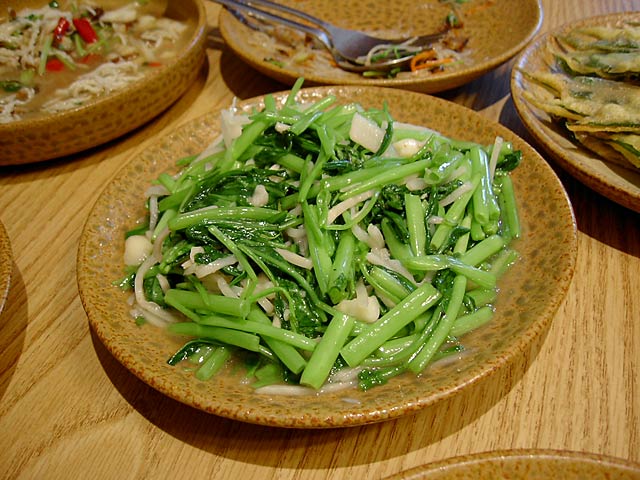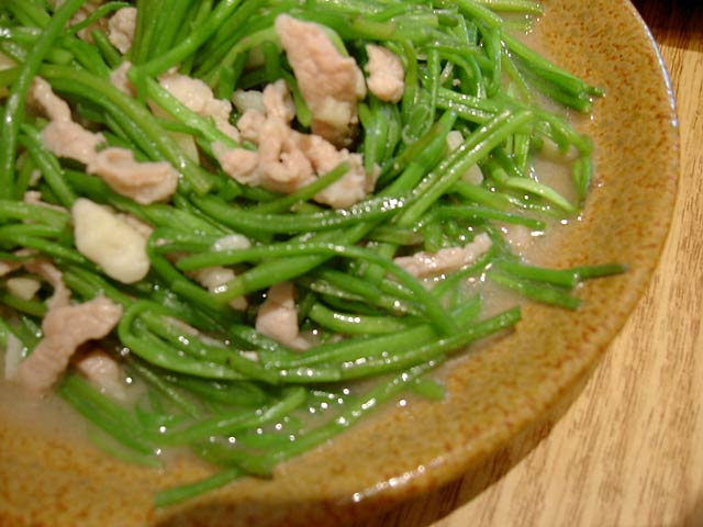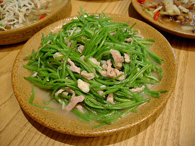 応菜炒筍絲(酸筍/空心菜と塗姆が漬け込んだ酸っぱい筍の炒め/180元)。