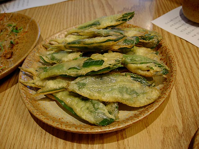 どれもなかなか美味しいんですが、これはとても気に入りました。日本では大葉の天ぷらみたいな感じかな。(日本にも山椒はありますが、葉の大きさも風味も違います)(JK)