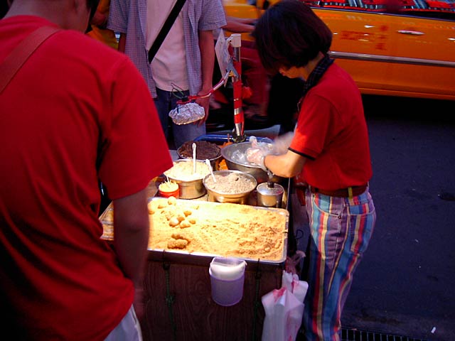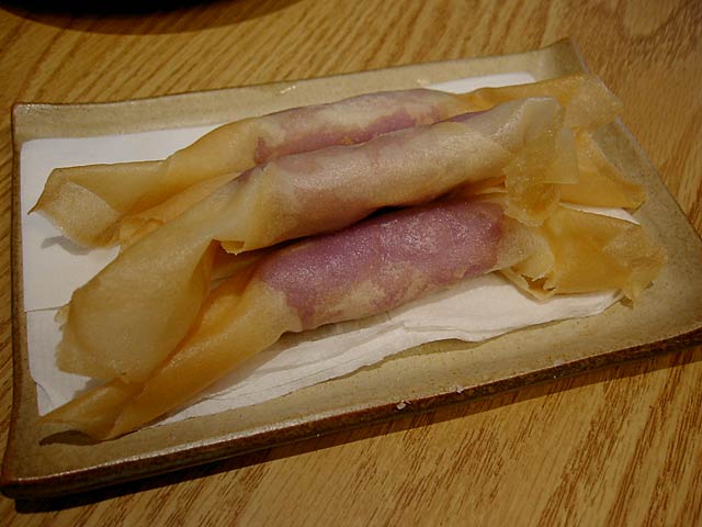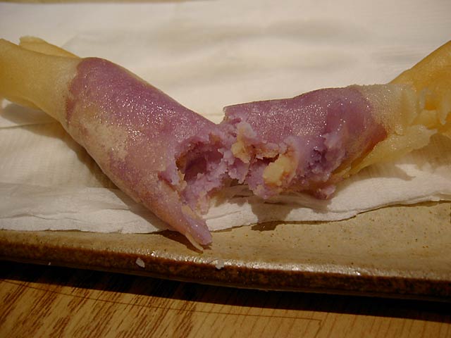 炸紫山薬條(紫山芋のフライ/4つで80元)。デザートです。ホックリしてなかなか美味しいです。(JK)