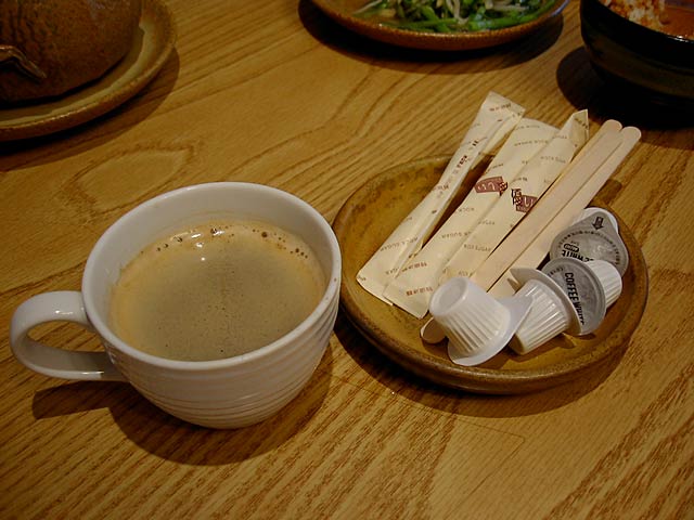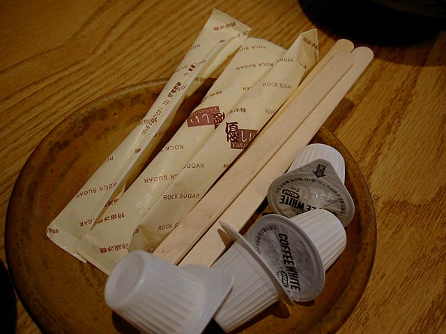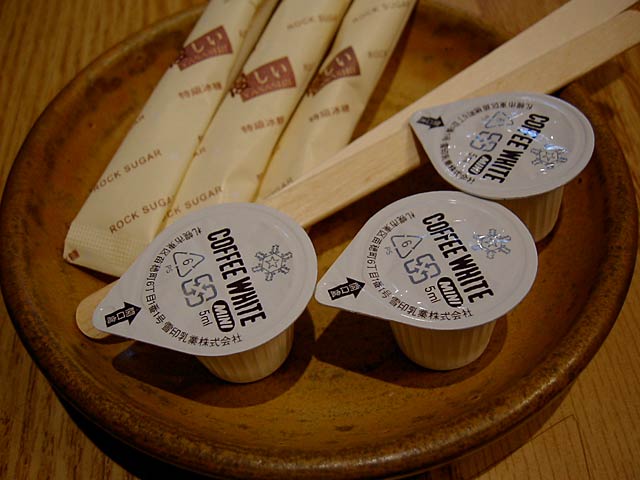 珈琲。スティックシュガーになぜだか「優しい」と記載があります。(JK)