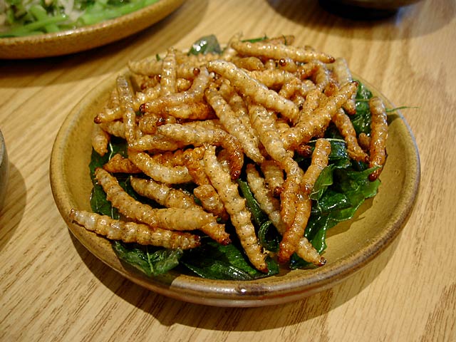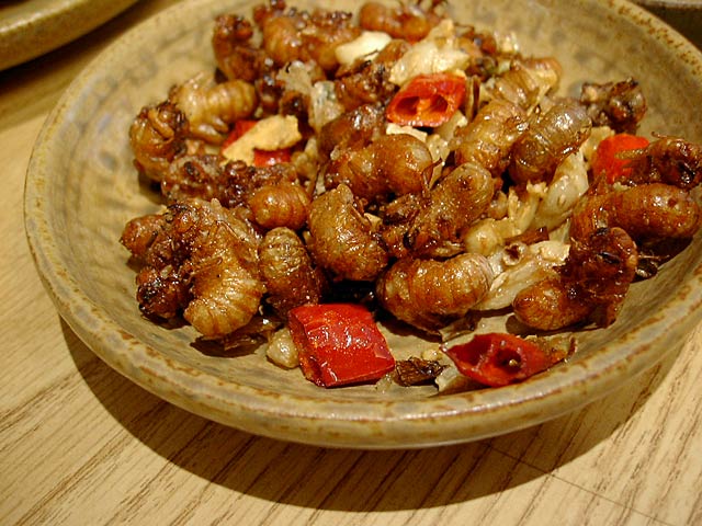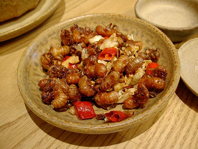 香酥土蜂蛹(土蜂のサナギの揚げもの)。