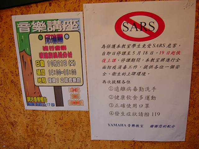 SARSに関する注意事項は、街の色んな所に掲示してあります。