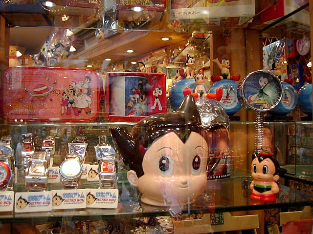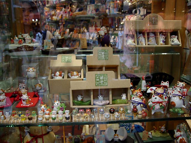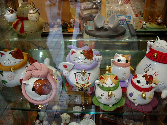 鉄腕アトムや猫グッズがてんこ盛りのお店もありました。招き猫は人気なんですね。