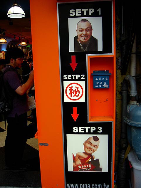 「STEP1 → STEP2マル秘 → 人形」ってなんだろうとよく見れば、そっくり人形を作ってくれる商売があるんですね。「我倣的」が「自分にそっくり」?