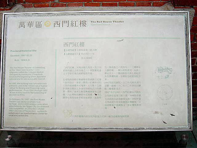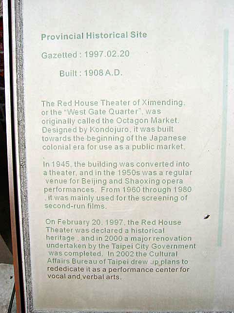 1908年に立てられたもので、戦後しばらくは劇場として使われその後映画館になり、だいぶ荒れ果てていたところを2002年に政府の保護のもと全面修復され、美しい劇場として蘇ったそうです。台北市政府から三級古跡にも指定されている建築だそうです。