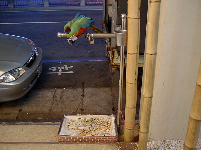 通りにオウムが。元気いっぱいに鳴いてましたが苦情はないのかな?