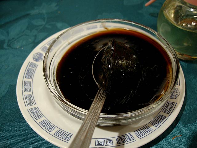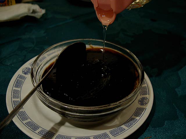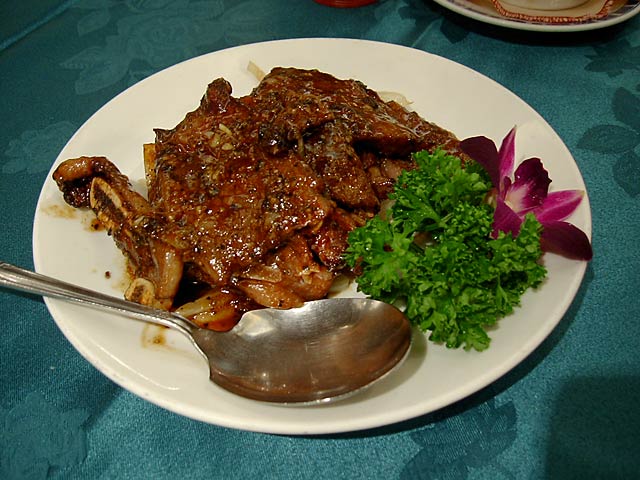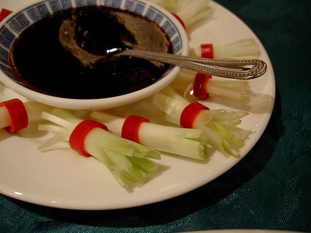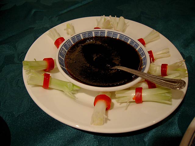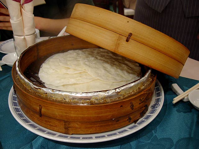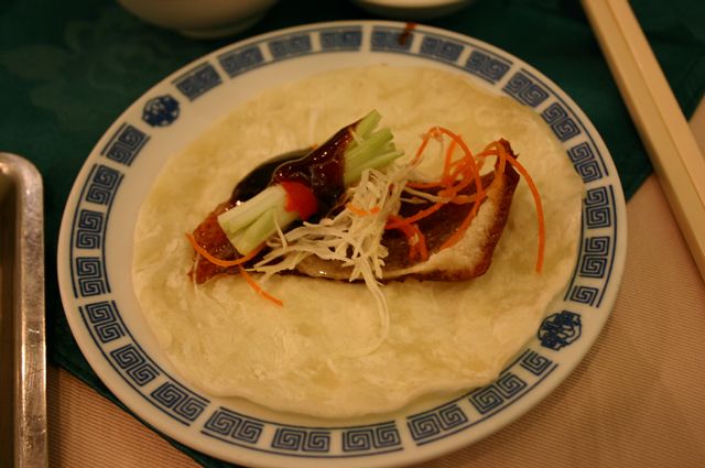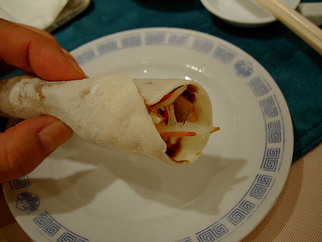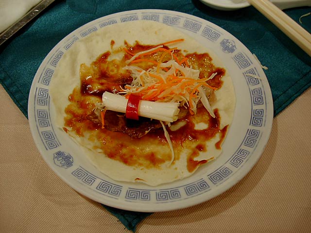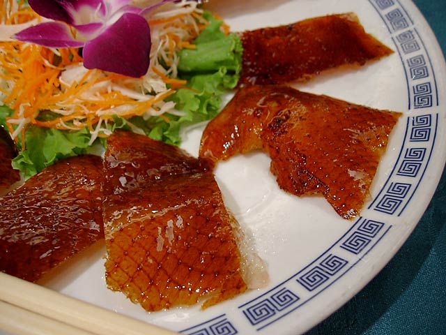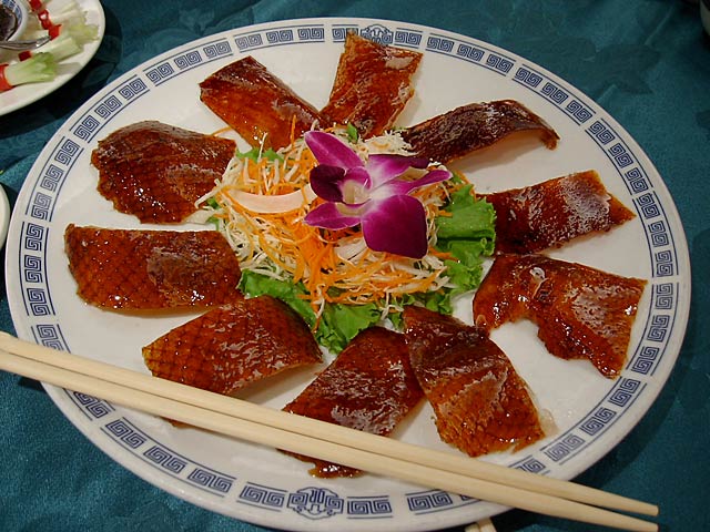 見た目は北京ダックと似てますが、調理法やなんやかや、だいぶ違うんだそうです。前に北京ダックを食べたのがいつなのか思い出せないわたしには違いはわからないですね。(^^; (JK)