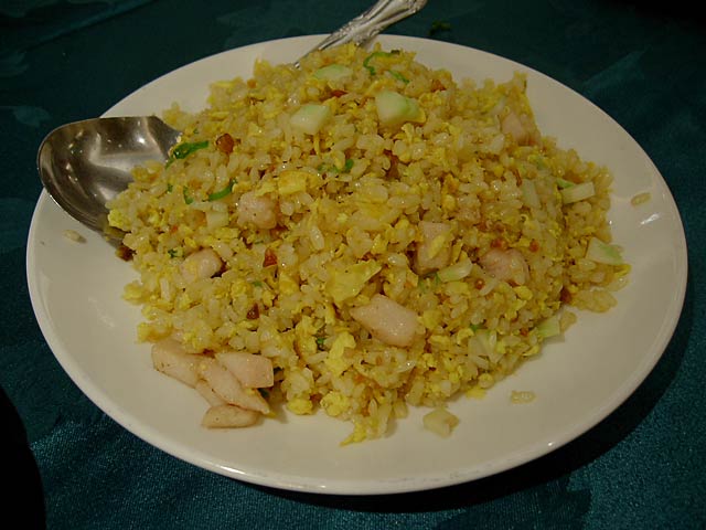 鹹魚●粒炒飯(塩づけ魚と●肉入りチャーハン/260元)。 (●=鶏の鳥が隹)
