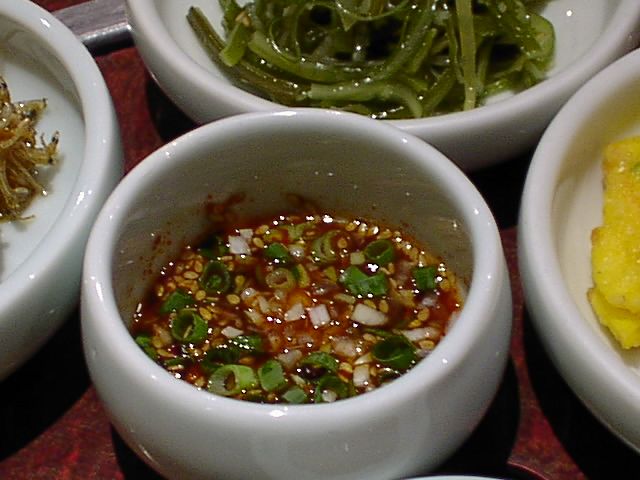 - 突き出しと一緒に出てきたけど、大きい器に入っている味噌はサムパ定食についてくるものです。このお店は突き出し料というか席料を取られるので注意(会計のとき計算が間違ってるかと思って聞いてしまった)。(め)