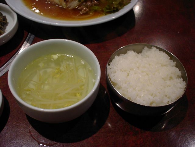 - スープはほとんどダシの味のしない、とてもあっさりしたスープでした。焼肉などと一緒に食べることを考えてあっさり味のスープにしているのでしょうね。(め)
