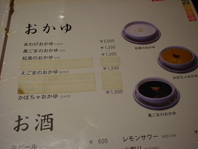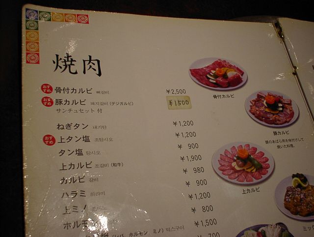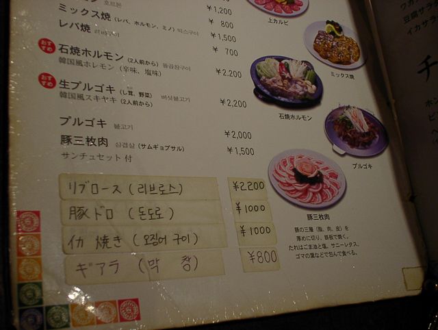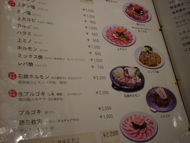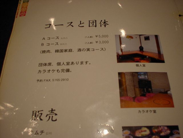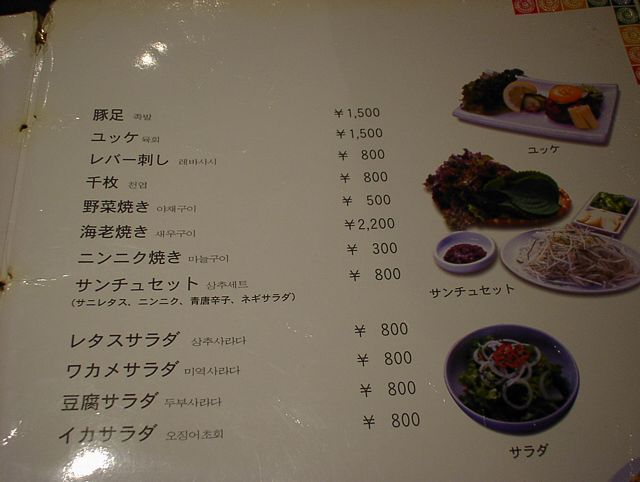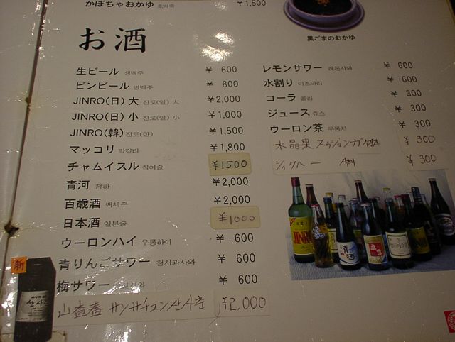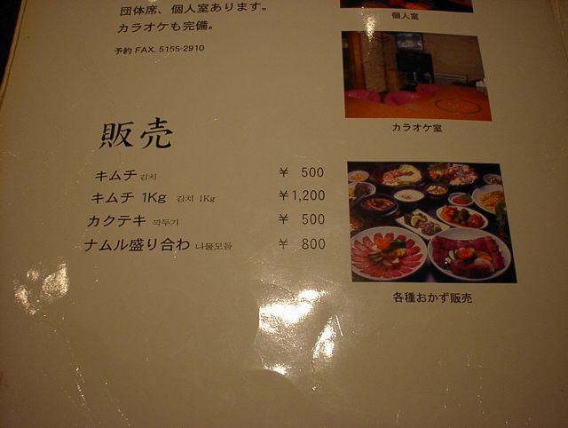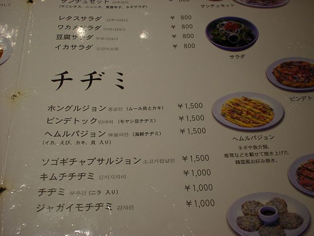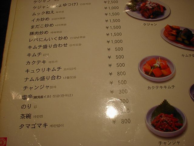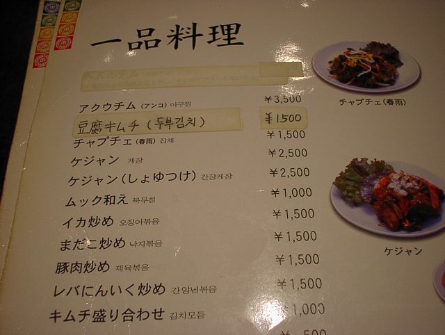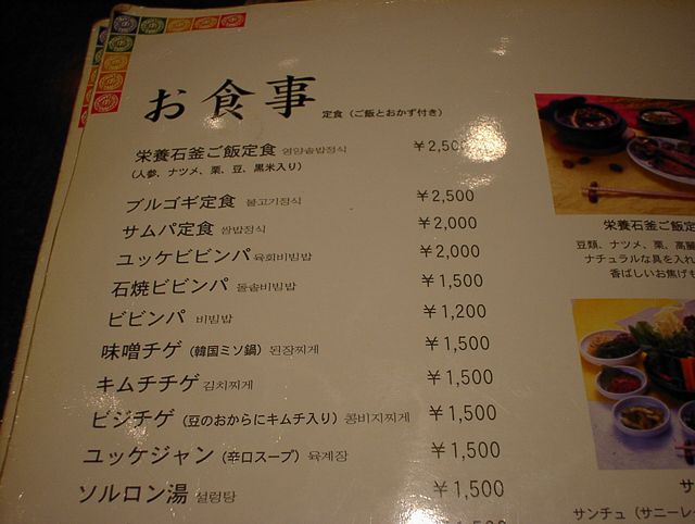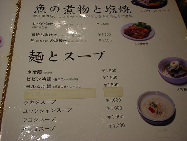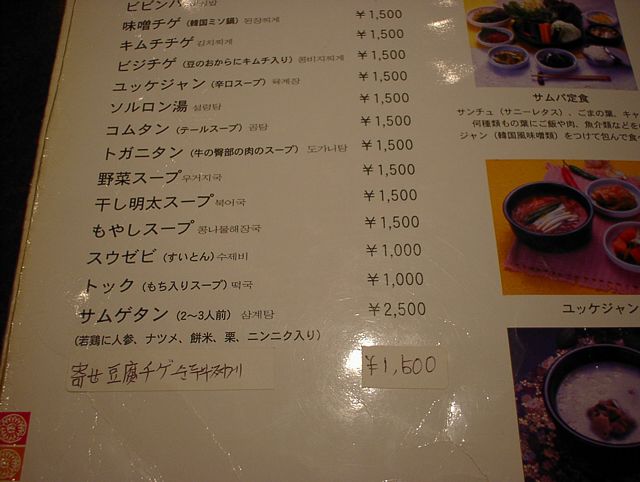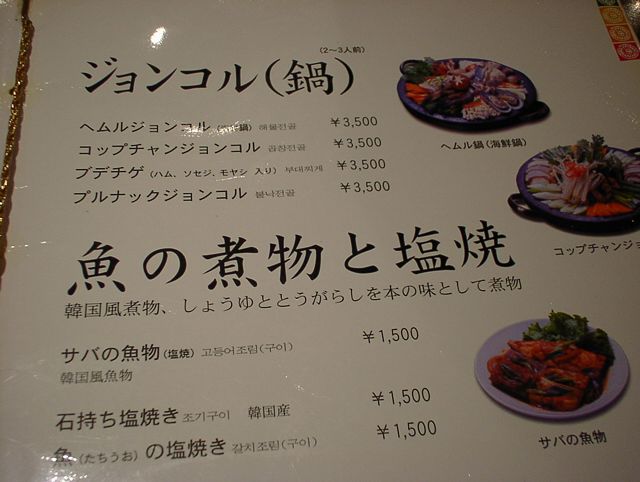 2003/11/01: 徳水宮(トクスグン)のメニュー