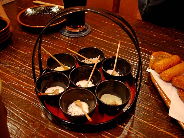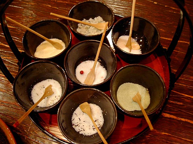 - 塩が付いてきます。凝ってますね。こんなに塩の種類があるともっと食べたくなっちゃう!?(JK)