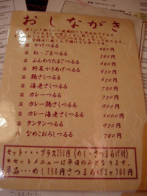 2003/11/22: つるるのメニュー