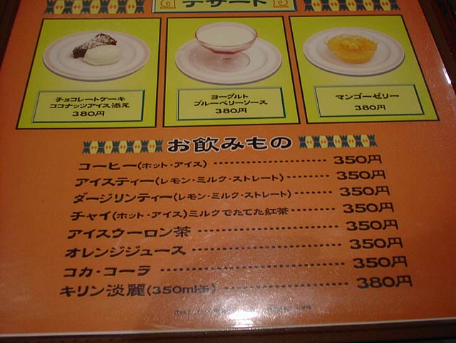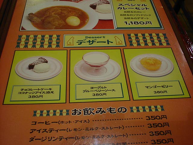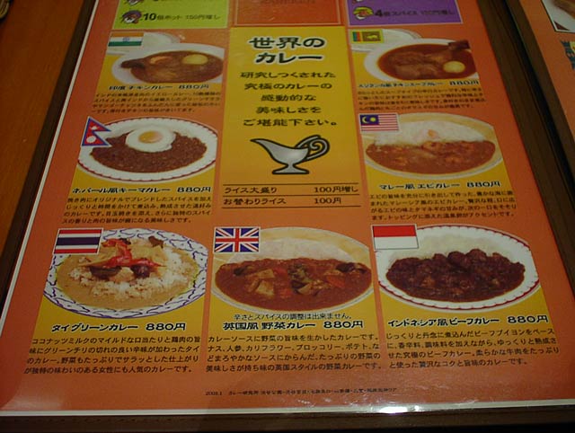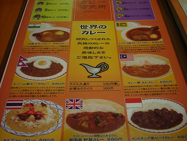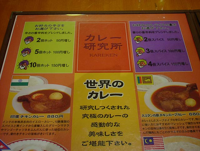 2003/12/06: カレー研究所のメニュー