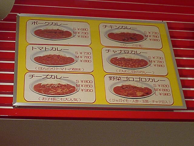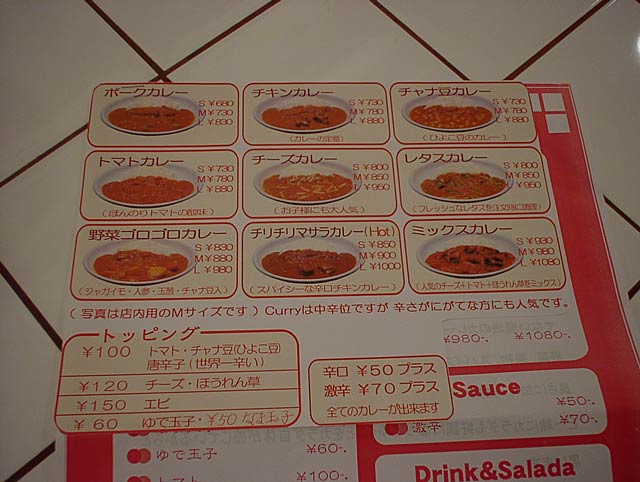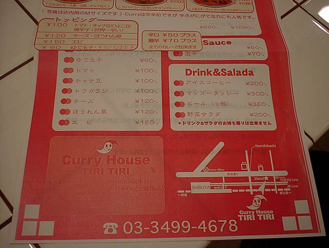 2003/12/20: TIRITIRIのメニュー