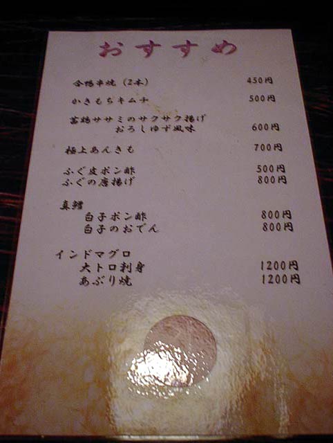2003/12/27: つるるのメニュー