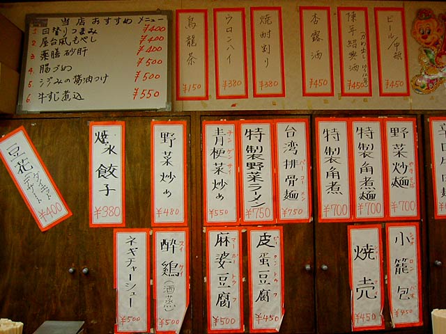 2004/02/14: 霞舫(かほう)二号店のメニュー